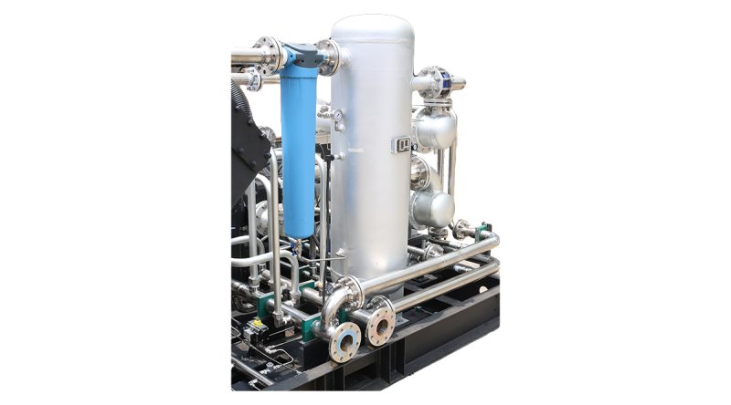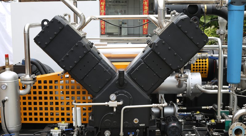 增压主机为角度式无油润滑、二列/三列、双作用双缸,气缸及填料均为无油润滑,对压缩气体无二次油污染;